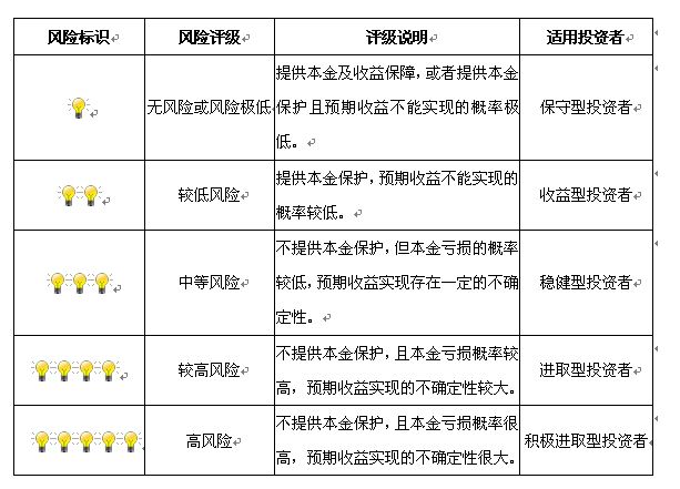 本期产品内部风险评级级别为三盏警示灯,风险程度属于中等风险级别(非保本浮动收益型理财产品)。(本风险评级为我行内部评级结果,该评级仅供参考,不具备法律效力。评级结果的含义请参见后附的评级标准说明)