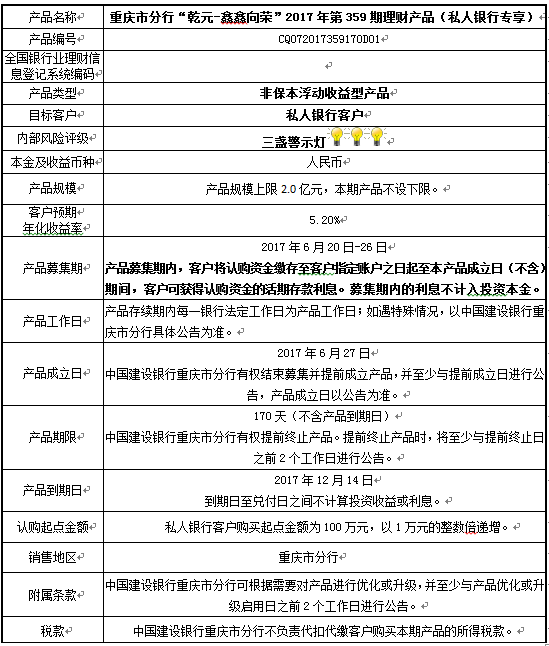 2017年第359期理财产品说明书