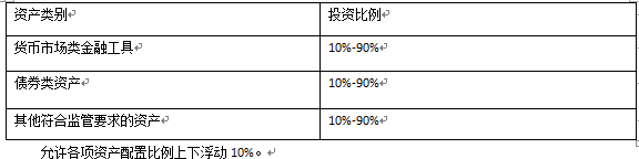 本期产品募集资金投资于(含直接投资、委托信托、基金等第三方机构间接投资):银行间债券市场债券类资产、回购、同业存款等,以及其他监管机构允许交易的金融工具。投资比例限制如下: