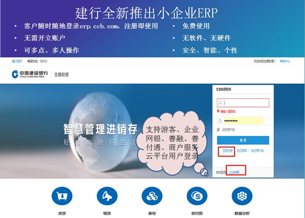 您随时随地登录erp.ccb.com注册即可免费使用。