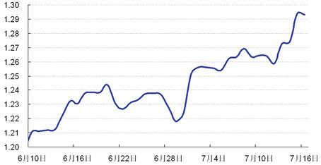 上周人民币兑美元中间价在6.77-6.78美元的位置震荡整理,放缓了汇改重启后的升值步伐。欧元兑美元继续走强,上涨至1.29美元上方。