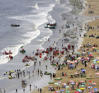 今年夏天,全中国大部分地区都遭遇了一场高温高湿的极度考验。很多地区高温超过四十摄氏度,炎炎苦夏,酷热难耐。海滩自然成了人们消夏避暑的首选,在温州的鱼辽沙滩上,人们冲浪戏水,偷得一片难得的清凉。 项光敬/摄