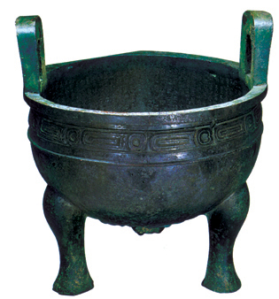 西周晚期·宗周钟 高:65.6厘米;舞纵:23.1厘米,横:30厘米; 两于相距:26.2厘米;两铣相距:35.2厘米;重:34.900公斤 钟是古代典礼时使用的打击乐器之一,宗周钟是西周厉王的用器。钟的两面各有18个突出的乳丁,钟的开口朝下,只有悬挂起来,才能敲击演奏。宗周钟的珍贵,在于钟身上刻有长达123字的铭文。铭文的大意是:周厉王时,南方濮国入侵,周厉王亲自讨伐,凯旋之后,铸造此钟,用来感谢敬拜祖先。铭文中有“仓仓匆匆”的象声词,形容钟敲起来的声音。宗周钟这件青铜器不仅给我们留下了珍贵的史料和视觉的享受,也是研究古乐不可缺少的佐证。