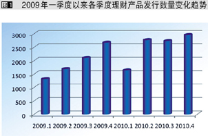 为火爆的银行理财市场带来影响的是2010年8月银监会发布的《关于规范银信理财合作业务有关事项的通知》(简称“通知”)。“通知”中“融资类业务余额占银信理财合作业务余额的比例不得高于30%”、“信托公司在开展银信理财合作业务过程中,不得开展通道类业务”等一系列规定极大限制了在银信合作中占比最重的融资型业务,使银信合作产品发行数从2季度的1620款下滑至4季度的747款。