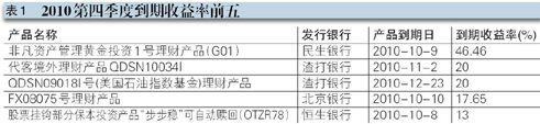 2010年四季度理财市场报行(商业银行)