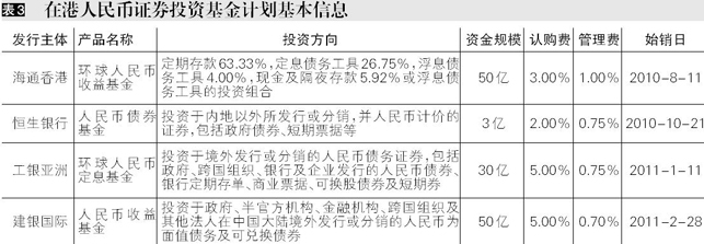 截至2011年2月,香港离岸人民币市场共发售人民币存款证14款,12款资金规模明确存款证的募集资金规模为93.2亿人民币。发行主体以香港商业银行和中资商业银行在港分行为主。期限多在两年以内,其中1年期产品最多,为6款。从产品的收益水平来看,各期限产品的收益水平明显低于同期限同币种的在岸定存利率,也不高于香港汇丰银行的定存利率水平。同期限存款证与定存利率之差最高达120基点,1.5年存款证预期收益水平与其他短期存款证收益倒挂的主要原因在于中信银行国际发售的存款证的预期收益水平仅为1.45%。在人民币升值预期的憧憬下,存款证在港受到热捧,部分产品在销售当日即完成募集。