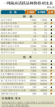 “五一”长假,京沪两大邮市破天荒地休市,不过网络是全天候的,因此成交依然活跃。随着5月的来临,不少投资者期盼“红五月”的出现,毕竟去年的5月份成为了邮币市场走强的分水岭。邮市:4月末邮市再次面临回调压力,不少热点品种下滑,其中2003年小版张的跌幅加大,一周平均跌幅超过10%,其中“羊年”小版张跌去25%。而新发行的“草书”小版张也回调至58元,“儒林外史”小版张则下沉到30元附近。币市:银币归为振荡,成交炙热,但短线风险隐现。其中2010版1盎司“熊猫”银币的价格在415元,有所下滑。但5盎司“辛卯兔”彩银币攀升到17800元,第三版人民币中的“红一角”券走高到7000元上方。