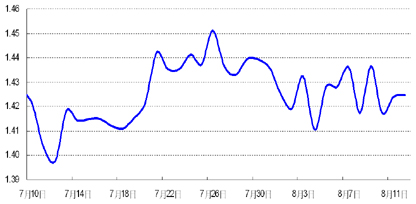 中国7月高顺差数据支持通过人民币升值来舒缓国内通胀压力,人民币对美元接连创出2005年汇改以来新高。受欧债危机、美国信用评级下调等因素影响,欧元对美元波动剧烈
