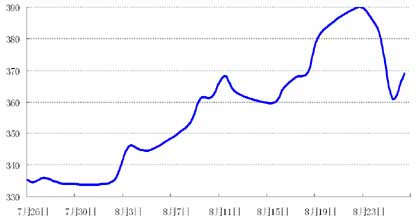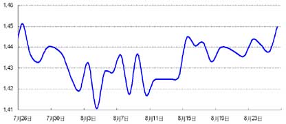 因德国和中国PMI数据好于预期,且美国经济数据偏弱加重QE3预期,欧元兑美元上涨102bps至1.4497。人民币兑美元涨44bps至6.387