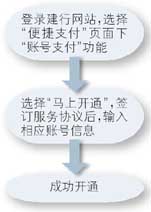 1.客户在网上购物后,选择使用建行进行网上支付,页面会跳转至建行网上支付页面,选择“账号支付”,页面提示将会自动引导客户使用账号支付功能。客户也可以先在网站上开通账号支付功能,如下图: