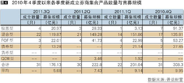 本季度,证券公司共发行券商集合理财产品31只,较上季度增加1只。截止季末,今年以来新成立产品数量达到83只,而2010年全年成立产品数量为97只。