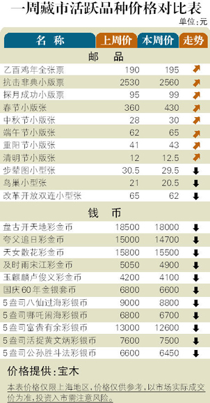 过去的一周,藏市人气清淡,尤其是周末大多数邮商和投资者参加“无锡亚展”,令入市者骤减,成交有限,热点则转移至“亚展”新发行的邮票上。邮市:尽管绝大多数邮票延续窄幅波动格局,但交易并不活跃,惟11日亮相的“无锡亚展”无齿小型张成为短线炒作目标,其个一度高开在240元,本周则回调至200附近,而“无锡亚展”小版张和小型张的价格也由面世初的17元和9元分别下沉至12.5元和7.5元。币市:国际金银价格振荡上扬,但金银币表现平平,整固盘旋特征依旧。新品继续阴跌,市场承接有限,如“清华大学”金银套币回调至9200元,“辛亥革命”和“西藏和平解放”金银套币分别微挫到7050元和5500元附近。