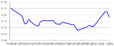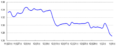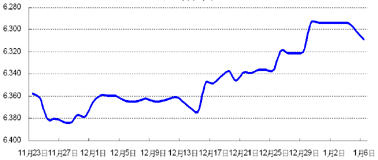 美国经济数据良好,欧债危机延续,避险资金流入美元资产,欧元兑美元跌破1.27。人民币兑美元中间价延续升势,新年第一周上涨0.25%