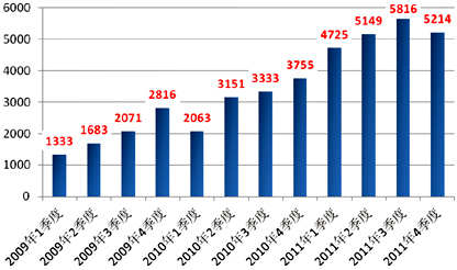 图1 2009年1季度以来各季度理财产品发行数量变化趋势
