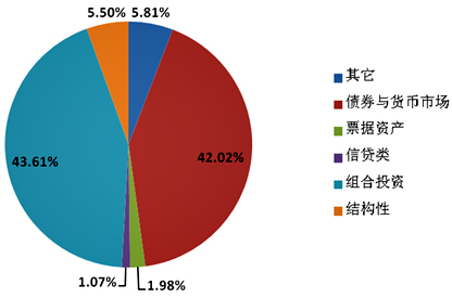 ● 组合类占比稳定,债券和货币市场类理财产品下行
