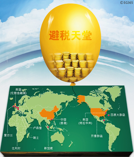 避税天堂首先必须是保密管辖地。也就是说,当地法规有意保护外国存款人的基本权利和账户使用,否则就称不上避税天堂。实际上,保密管辖地的规章制度的设计初衷就是要违反其他管辖地的法律法规。十大最佳避税天堂依次是:美国(特拉华州)、卢森堡、瑞士、开曼群岛、英国(伦敦金融城)、爱尔兰、百慕大群岛、新加坡、比利时和中国(香港)。图:EG365/CFP