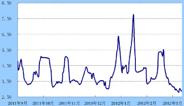债券市场:国务院总理温家宝再次强调房地产调控不动摇,令市场推测央行货币政策放松的节奏比预期慢,但资金面仍然宽松使得债券市场仅微幅波动