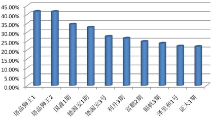 图3 2012年第1季度表现前十阳光私募产品(单位:款)