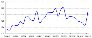 因月底大量刚性购汇需求刺激美元买盘,人民币兑美元即期汇率上周仍脱离中间价低位运行。周五,欧元因欧盟峰会达成协议飙升,报收1.2658