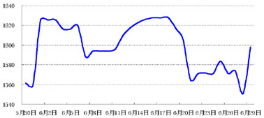 上周,国际金价先跌后涨,周初大幅下挫,周五欧盟峰会传出利好消息后,金价快速反弹,报收1598美元/盎司,国际油价亦走出先抑后扬的走势