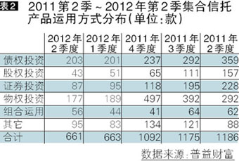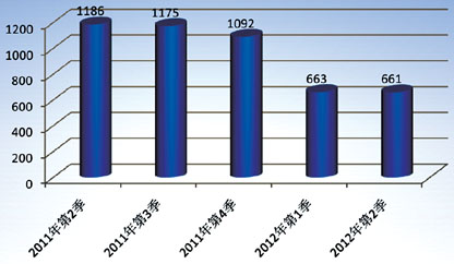 图1 2011第2季~2012年第2季集合信托新品发行量(单位:款)