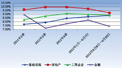 图2 2011第2季~2012年第2季各领域集合信托产品收益率走势