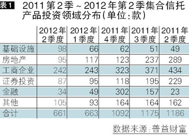 2012年以来,信托产品收益率随着市场资金的宽松逐步走低,如房地产信托、工商企业信托、金融信托的平均收益率分别由2011年第4季的9.94%、9.09%、7.74%下降至2012年1月~6月间的9.72%、8.96%、8.23%。