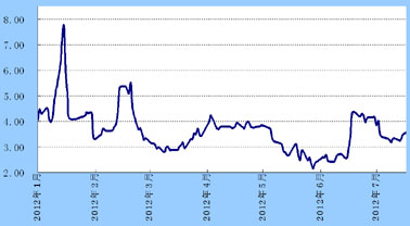 货币市场:虽然央行19日启动800亿元逆回购操作,但上周公开市场依然净回笼资金600亿元,资金面仍略显紧张,7天回购利率上行24bps至3.58%