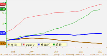 上半年欧债危机不断深化,对实体经济的影响已从外围国家向核心国扩散。根据欧盟统计局数据显示,欧元区一季度GDP持续低迷,同比降低0.1%,呈下降趋势。同时欧元区核心成员国德国和法国的增长前景也不容乐观,法国第一季度GDP较上一季度持平,而德国一季度GDP仅较去年同期增长1.7%,因家庭需求持续低迷,投资下滑且出口放缓。
