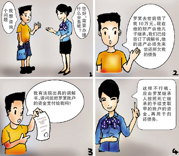 遇到类似情况,方某应当要求罗生按照死亡继承的手续支取罗某的账户的存款,如果罗生不履行调解书约定的,方某可向法院申请强制执行,银行将依据法院的生效裁定予以协助执行。