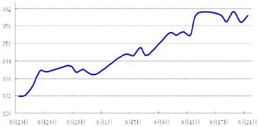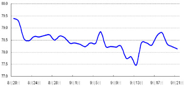 货币市场:由于国庆长假即将来临,市场流动性渐趋紧张,尽管央行净投放1010亿元人民币,7天质押式回购利率仍较前周上行107个基点至4.4277%