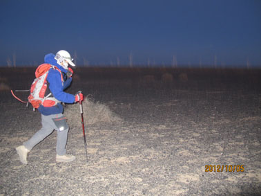 第六届“玄奘之路”戈壁成人礼徒步旅行,从10月2日至5日在敦煌举行,共有60对家庭120位成员参加活动,行走四天,途经沙漠、雅丹地貌、戈壁滩、红柳滩、盐碱地、戈壁丘陵、渡疏勒河等,经历了太阳暴晒、大风、沙漠小雨、夜间接近0度的低温等天气,最长一天行走11个小时,全程共110公里路程。