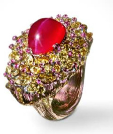 红宝石、翠榴石、黄色刚玉、钻石、彩色钻石