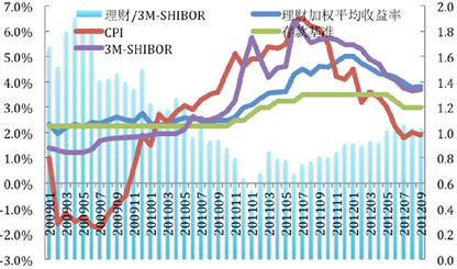 图5 人民币理财加权平均收益率、CPI、存款基准和