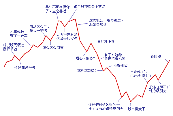 投资需要有一定的纪律,但实际操作中个人往往难于坚持,喜欢追涨杀跌,躲避不了贪婪和恐惧。而基金定投因为每月定时扣款的纪律性,避免了像一次性投入那样给自己做判断的机会,可以说是“强制”克服人性的弱点。不要小看纪律的作用,看看下图,正是这种普通投资者的心态让许多人老是难赚钱。